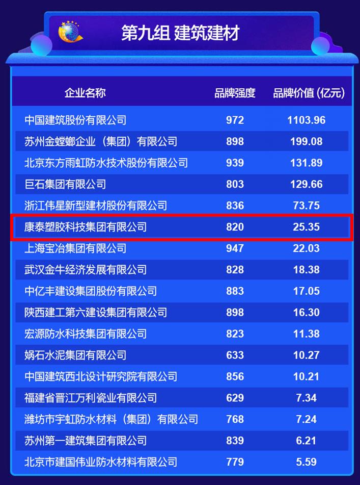 5月10日,中國品牌建設(shè)促進(jìn)會(huì)發(fā)布了“2020年中國品牌價(jià)值榜單”??堤┧苣z品牌價(jià)值達(dá)到25.35億元,升幅88%,再創(chuàng)新高,有力彰顯了“康泰”品牌的強(qiáng)度、知名度、美譽(yù)度。