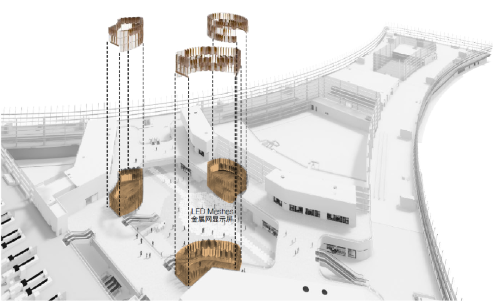 ▲ 4層的餐飲區(qū)可按人群需要提供不同形式的休閑座椅布置