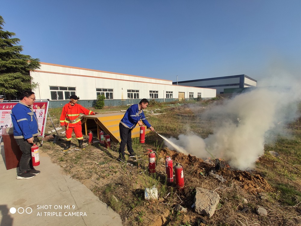 在演習(xí)活動(dòng)前,首先向公司班組長(zhǎng)以上員工講解了消防器材、維護(hù)以及使用的方法。演習(xí)模擬庫(kù)房空地起火冒出一股濃煙?!盎馂?zāi)啟動(dòng)緊急信號(hào)!火災(zāi)啟動(dòng)緊急信號(hào)!現(xiàn)在設(shè)備區(qū)發(fā)生火災(zāi),請(qǐng)大家不要驚慌,不要擁擠,聽(tīng)從疏散人員指揮,迅速?gòu)陌踩隹谑枭??!彪S著一聲叫喊,值班人員(扮演)迅速啟動(dòng)公司消防應(yīng)急預(yù)案,撥打119火警電話,請(qǐng)求支援,并通知有關(guān)人員撤離疏散。成功疏散人員之后,工作人員手持滅火器進(jìn)入院內(nèi)對(duì)起火點(diǎn)進(jìn)行滅火,消防應(yīng)急小分隊(duì)利用消防栓水滅火,時(shí)間控制火勢(shì)蔓延。經(jīng)過(guò)一番緊張的撲救,終于明火被完全撲滅,3分鐘后,隨著濃煙漸漸散去,演習(xí)取得圓滿成功。