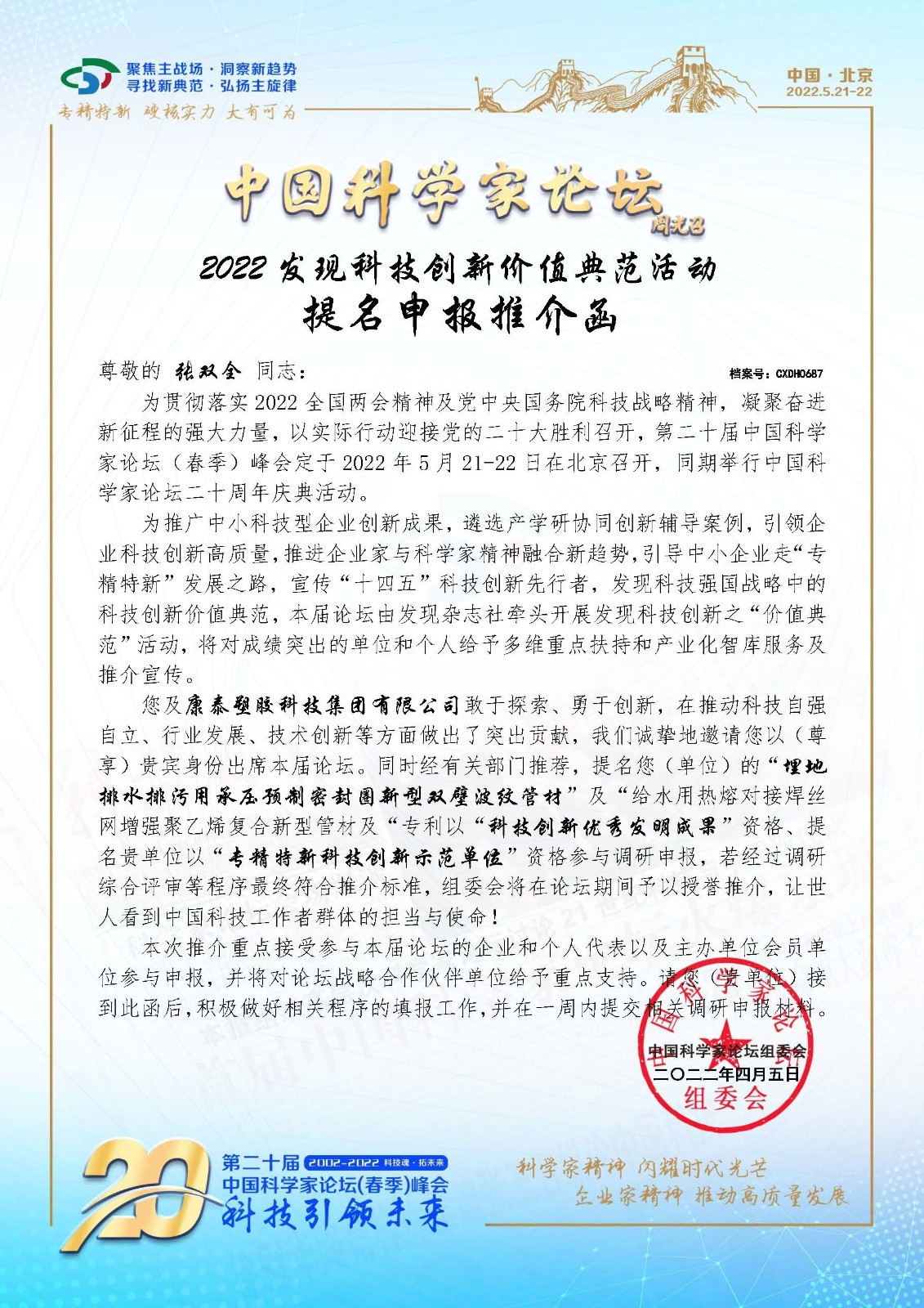 5月21日康泰集團(tuán)總工程師兼技術(shù)總監(jiān)張雙全應(yīng)邀參加了“第二十屆中國科學(xué)家論壇線上會議”。張總詳細(xì)介紹了企業(yè)的基本情況,重點(diǎn)介紹了集團(tuán)差異化產(chǎn)品。通過線上會議有效宣傳、推介了康泰集團(tuán)差異化產(chǎn)品,傳播了康泰品牌。