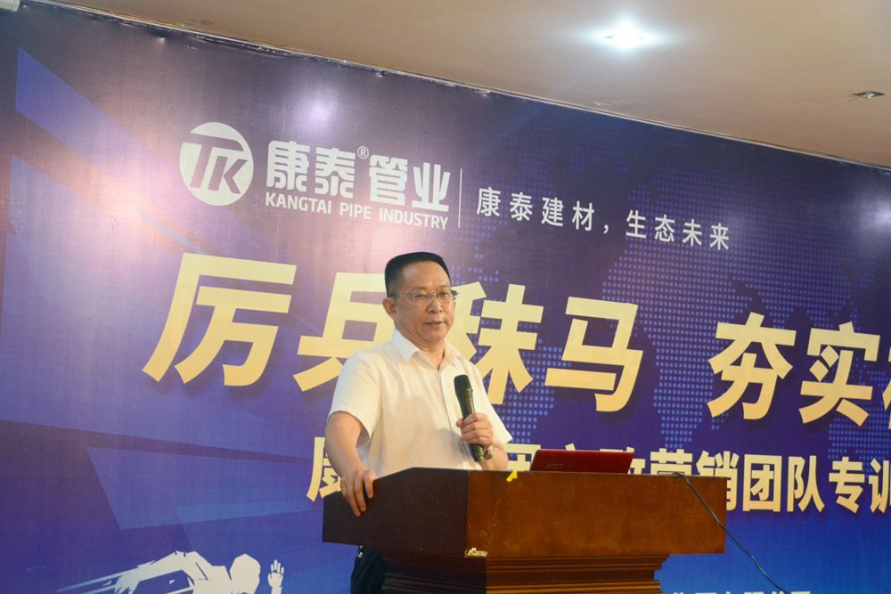 市政總監(jiān)何朝暉就此次培訓(xùn)的目的作了三點(diǎn)闡述,一是受國際國內(nèi)市場環(huán)境,新冠疫情影響,塑膠管道行業(yè)的改革和調(diào)整勢在必行。公司根據(jù)這些變化及時做出戰(zhàn)略和結(jié)構(gòu)上的調(diào)整是及時和正確的;二是目前中國塑料管道行業(yè)產(chǎn)能嚴(yán)重過剩,塑膠管道市場也正向有技術(shù)、有產(chǎn)品、有品牌知名度的企業(yè)集中。加之未來幾年國家將不斷加大在市政基礎(chǔ)設(shè)施領(lǐng)域的投入,這對康泰來說是機(jī)遇,也是突破;三是本次培訓(xùn)就是撈干貨,徹底講清楚講透徹我們的市政五大產(chǎn)品系統(tǒng),打造“差異化”產(chǎn)品,搶單殺單。希望市政銷售團(tuán)隊全體精英要認(rèn)真領(lǐng)會培訓(xùn)的目的和意義,努力提升自己,上下打通。