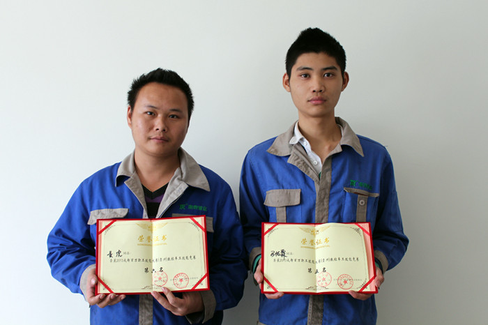 ??? 2013年8月,公司維修電工陳定平、龔繼永,數(shù)控車工馬佑霖、黃虎四位員工代表公司,參加了由成都市總工會、人社局舉辦的2013成都百萬職工技能大賽。在維修電工組的比賽中,陳定平以90.2的高分榮獲維修電工第一名,龔繼永獲得第五名;在數(shù)控車工組比賽中,馬佑霖獲得第五名,黃虎獲得第六名。通過比賽,陳定平職業(yè)資格可晉升為高級,而其他三位員工則晉升為中級。