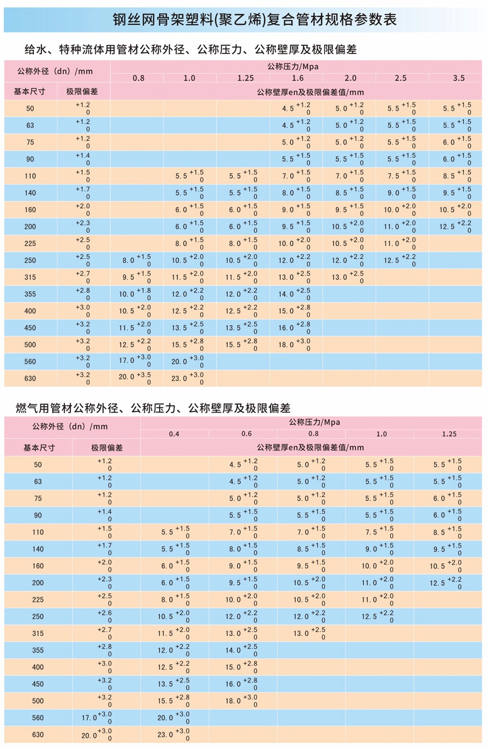 鋼絲網(wǎng)骨架管塑料(聚乙烯)復合管道系列: